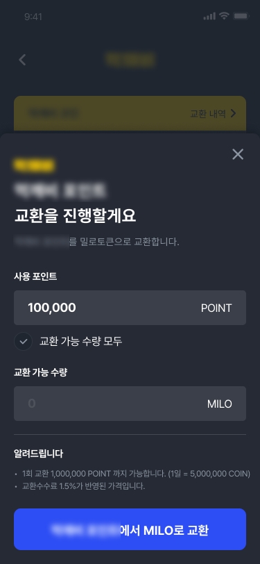 After checking the real-time points, press the ‘Exchange to Milotoken’ button.